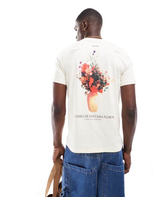 Camiseta blanco hueso con estampado floral en la espalda de ASOS DESIGN