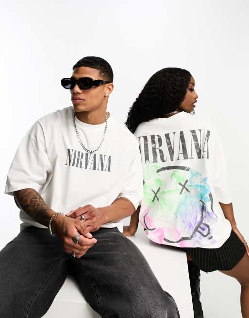 Camiseta blanco hueso extragrande unisex con estampado de Nirvana de ASOS DESIGN