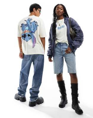Camiseta blanco hueso extragrande unisex con estampado grande de Stitch de Disney en la espalda de ASOS DESIGN