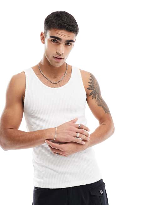 Camiseta blanco hueso sin mangas ajustada de canalé cepillado de ASOS DESIGN