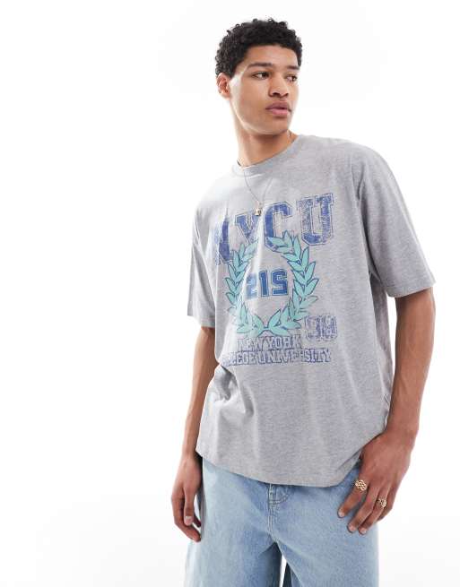 Camiseta blanco jaspeado extragrande con estampado gráfico universitario de ASOS DESIGN