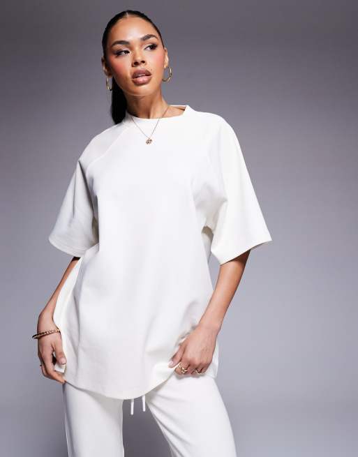 Camiseta blanco leche de coco con mangas raglán de punto entrelazado de ASOS DESIGN (parte de un conjunto)