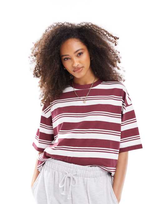 Camiseta burdeos a rayas extragrande de punto flameado de ASOS DESIGN