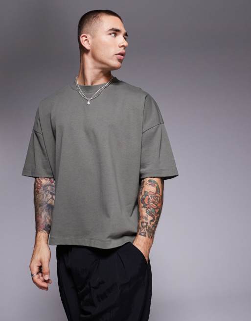 Camiseta caqui de corte cuadrado extragrande con sisas caídas de tejido grueso de ASOS DESIGN