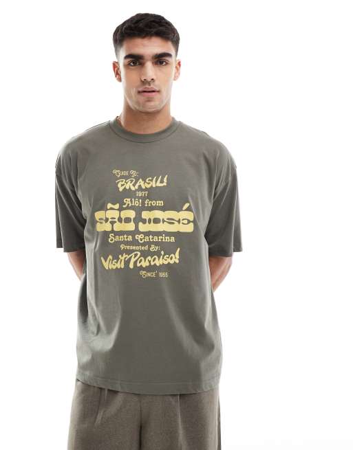 Camiseta caqui extragrande con estampado gráfico de ciudad de ASOS DESIGN