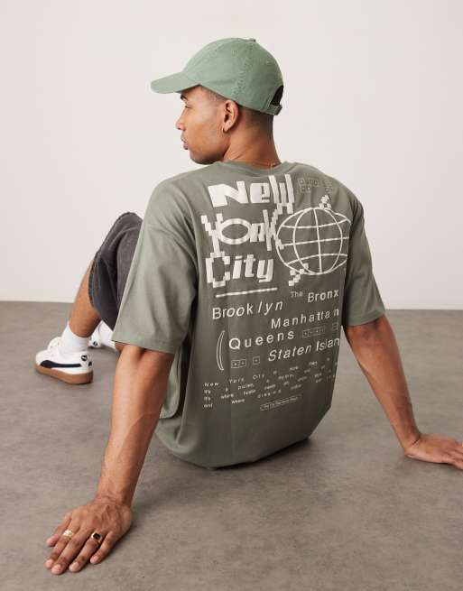 Camiseta caqui extragrande con estampado gráfico de ciudad de ASOS DESIGN