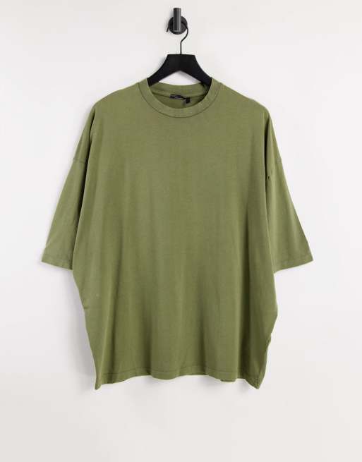 Camiseta caqui extragrande con lavado ácido de algodón orgánico de ASOS DESIGN