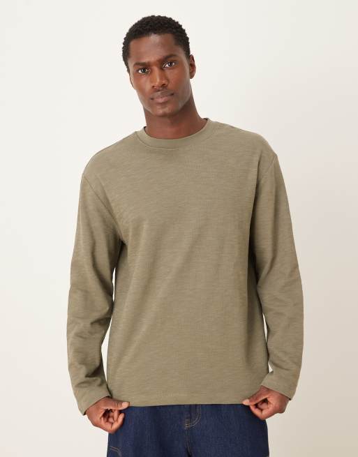 Camiseta caqui holgada de manga larga de tejido texturizado de ASOS DESIGN