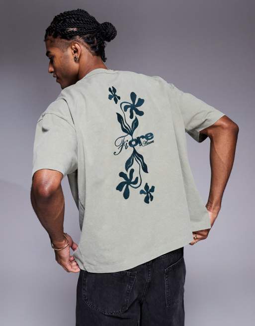 Camiseta caqui lavado de corte cuadrado extragrande con bordado floral de ASOS DESIGN