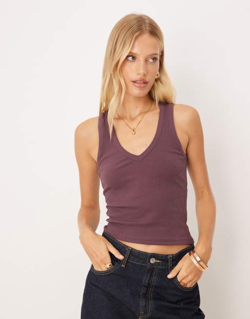 Camiseta color baya de tirantes con cuello de pico de canalé de ASOS DESIGN