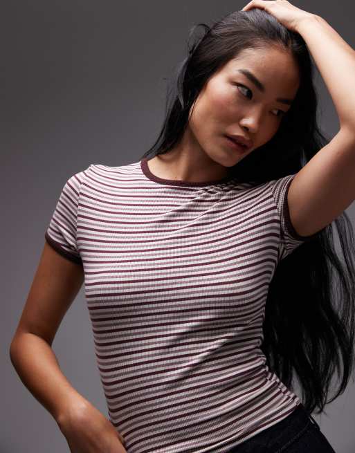 Camiseta color ciruela a rayas con diseño encogido y ribetes de ASOS DESIGN
