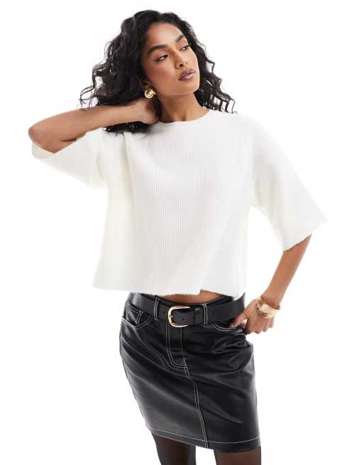 Camiseta color crema de punto mullido de ASOS DESIGN