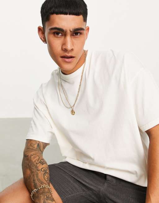 Camiseta color crema extragrande con cuello redondo de ASOS DESIGN