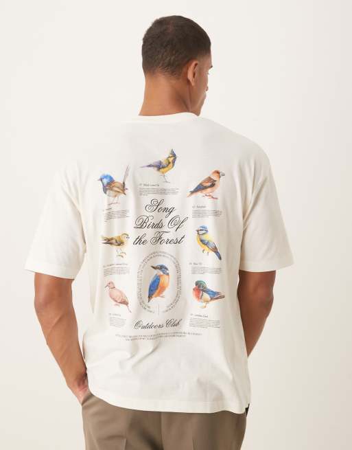Camiseta color crema extragrande con gráfico de pájaros de ASOS DESIGN