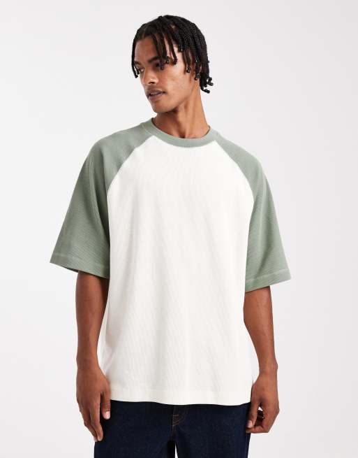 Camiseta color crema extragrande con mangas raglán en contraste de tejido grueso texturizado de ASOS DESIGN