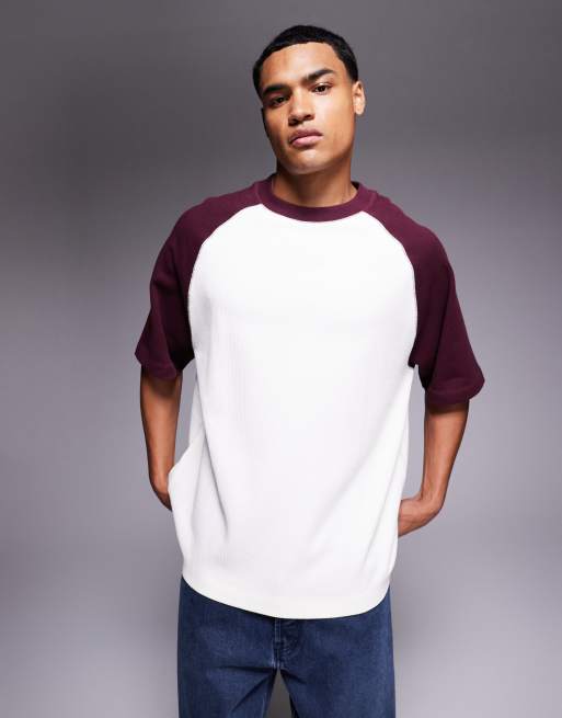 Camiseta color crema extragrande con mangas raglán en contraste de tejido texturizado acanalado premium de ASOS DESIGN