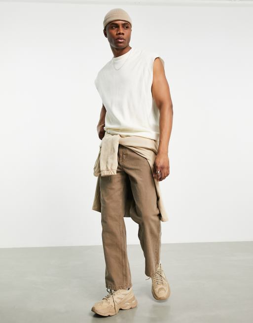 Camiseta color crema extragrande sin mangas de punto de arroz de ASOS DESIGN