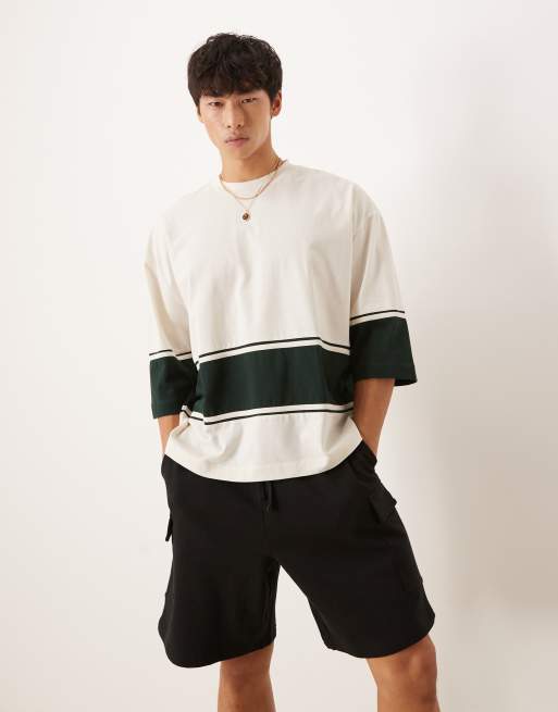 Camiseta color crema y verde extragrande con ribetes en contraste de tejido grueso de ASOS DESIGN