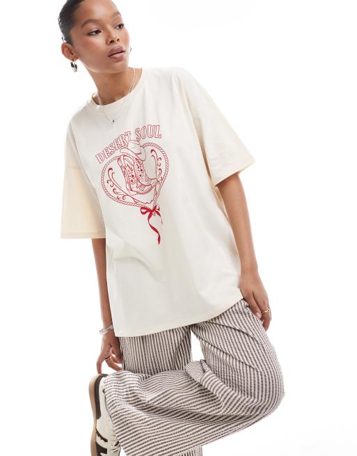 Camiseta color crudo extragrande con estampado gráfico de herradura y bota de cowboy de ASOS DESIGN