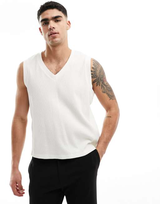 Camiseta color crudo holgada sin mangas con cuello de pico de ASOS DESIGN