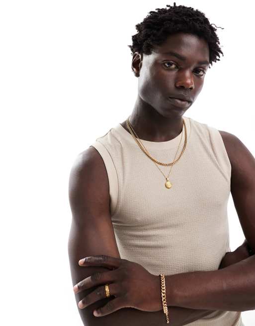 Camiseta color piedra ajustada sin mangas de tejido texturizado de ASOS DESIGN