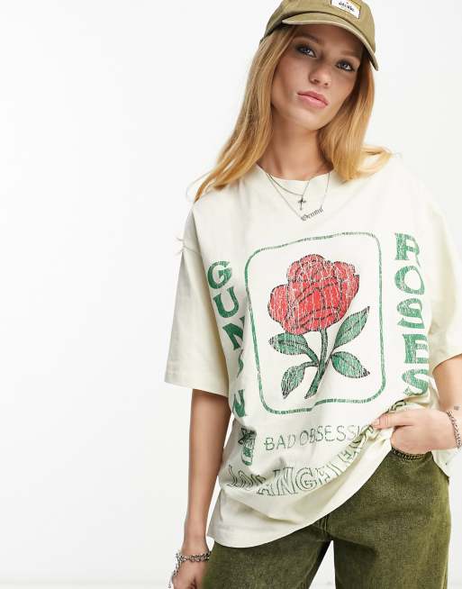Camiseta color piedra extragrande con estampado gráfico con licencia de los Guns N' Roses de ASOS DESIGN