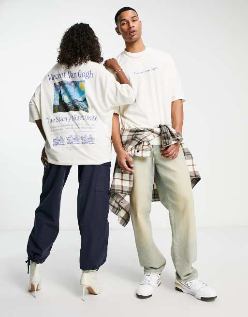 Camiseta color piedra extragrande unisex con estampado con licencia de Van Gogh de ASOS DESIGN