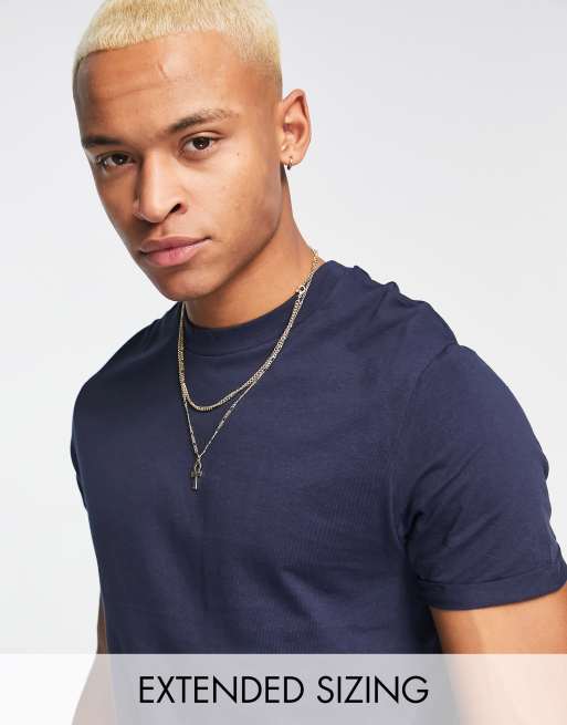 Camiseta con cuello redondo y vuelta en la manga en azul marino de ASOS DESIGN