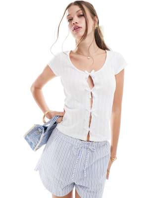 Camiseta con diseño encogido y detalle de lazos de encaje de punto pointelle de ASOS DESIGN