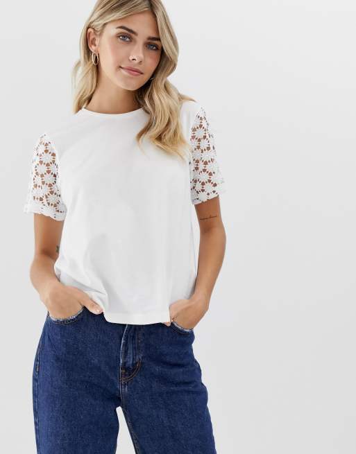 Camiseta con mangas de encaje de ASOS DESIGN