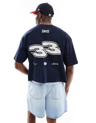 Camiseta corta azul marino extragrande con estampado gráfico urbano de ASOS DESIGN