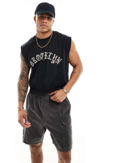 Camiseta corta extragrande sin mangas con estampado "Brooklyn" en el pecho de ASOS DESIGN