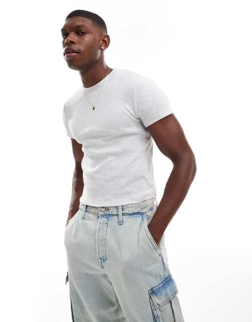Camiseta corta gris jaspeado ajustada de ASOS DESIGN