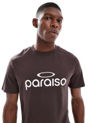 Camiseta corta marrón con estampado gráfico de texto de ASOS DESIGN