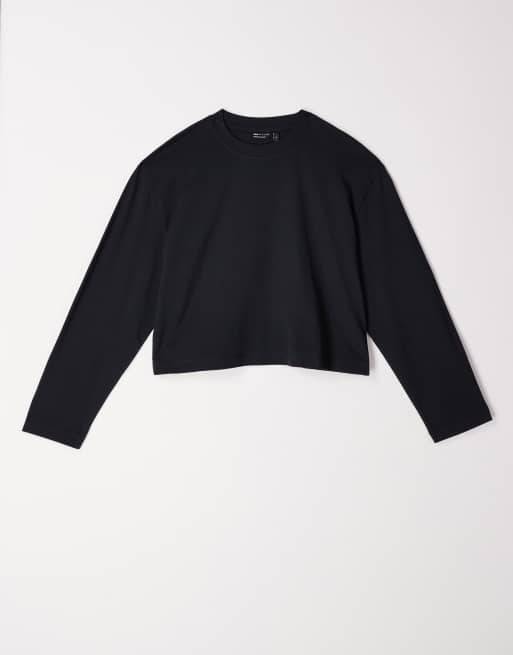 Camiseta corta negra de manga larga y corte cuadrado de ASOS DESIGN