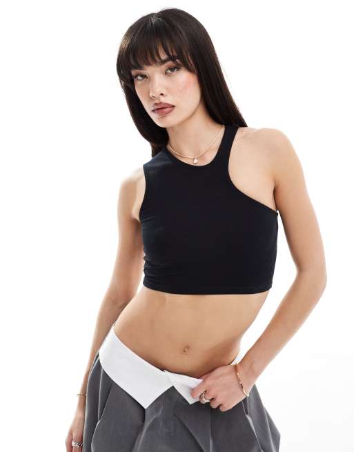 Camiseta corta negra sin mangas con cuello recortado en ángulo de ASOS DESIGN