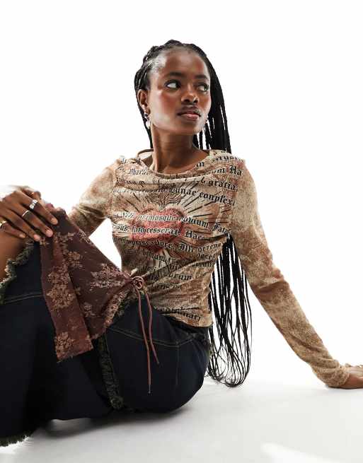 Camiseta de manga larga con diseño encogido y estampado gráfico de corazón renacentista de malla de ASOS DESIGN