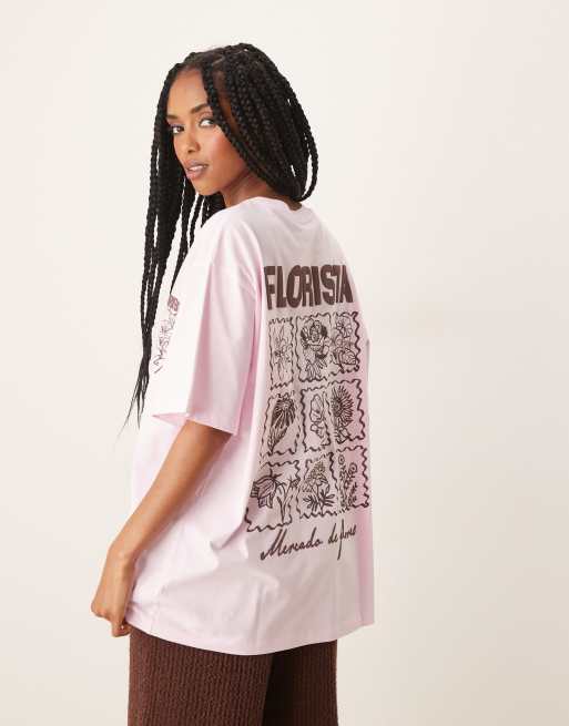 Camiseta extragrande con estampado gráfico de flores de cerezo de ASOS DESIGN