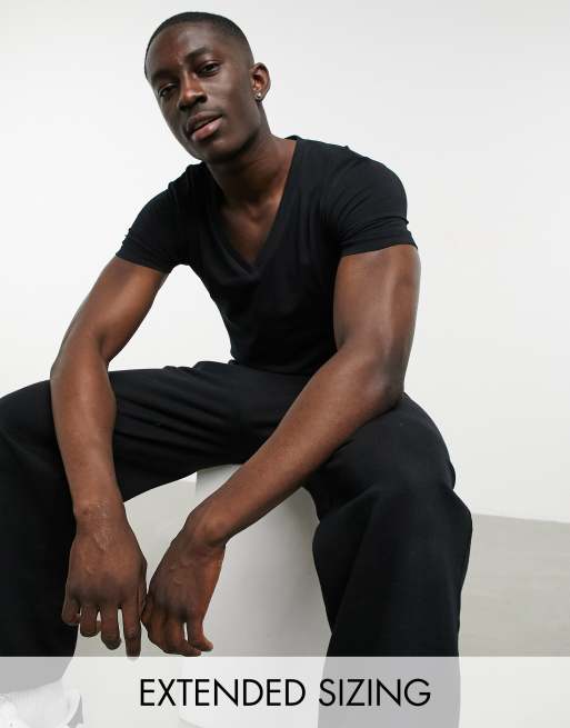 Camiseta gris ajustada con cuello de pico de mezcla de algodón orgánico de ASOS DESIGN