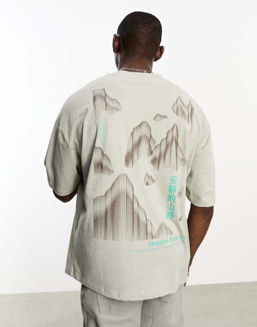 Camiseta gris extragrande con estampado de montaña en la espalda y el pecho de ASOS DESIGN