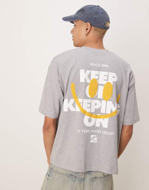 Camiseta gris jaspeado de corte cuadrado extragrande con estampado gráfico de texto en relieve de ASOS DESIGN