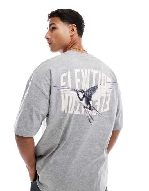 Camiseta gris jaspeado extragrande con estampado gráfico de ave de ASOS DESIGN