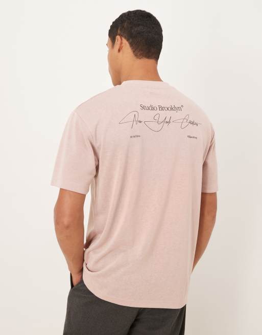 Camiseta gris oscuro holgada con estampado gráfico de texto de efecto lino de ASOS DESIGN