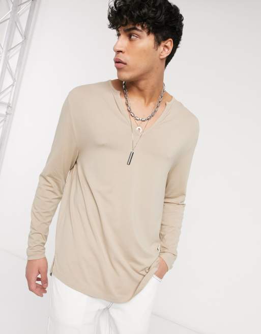 Camiseta larga y holgada de punto de manga larga en beis de ASOS DESIGN