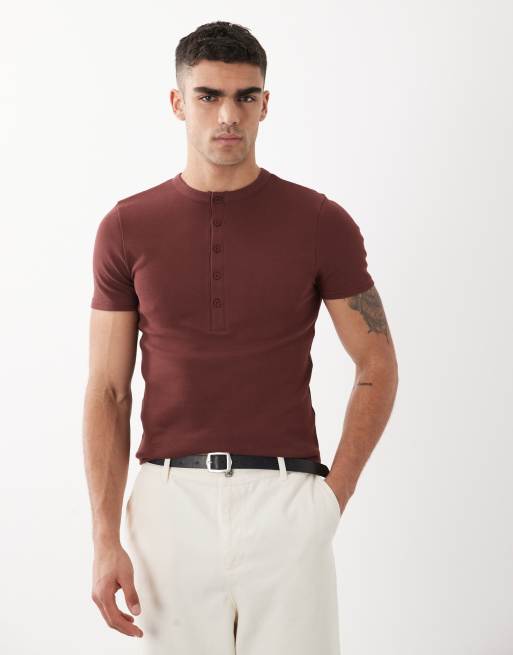 Camiseta marrón ajustada con cuello panadero de canalé de ASOS DESIGN