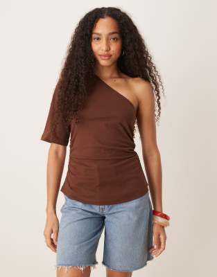 Camiseta marrón asimétrica con cintura ceñida de ASOS DESIGN