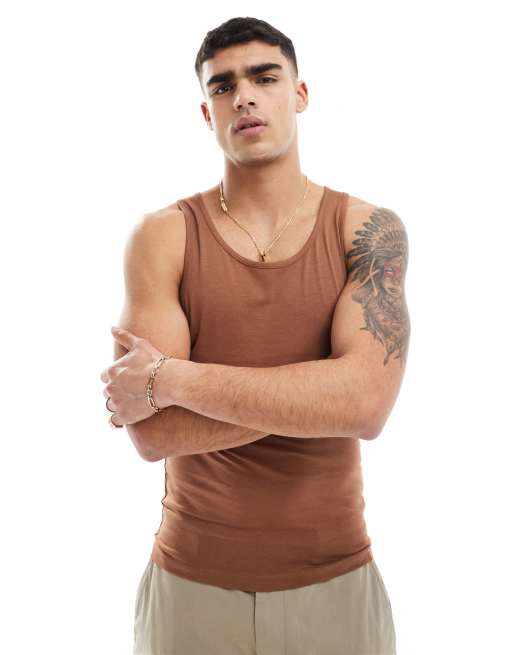 Camiseta marrón básica ajustada de tirantes de ASOS DESIGN