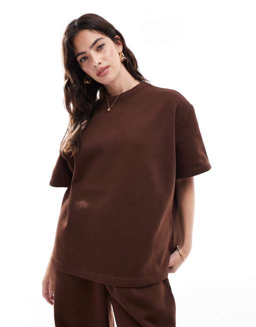 Camiseta marrón chocolate extragrande de tejido de sudadera de ASOS DESIGN (parte de un conjunto)