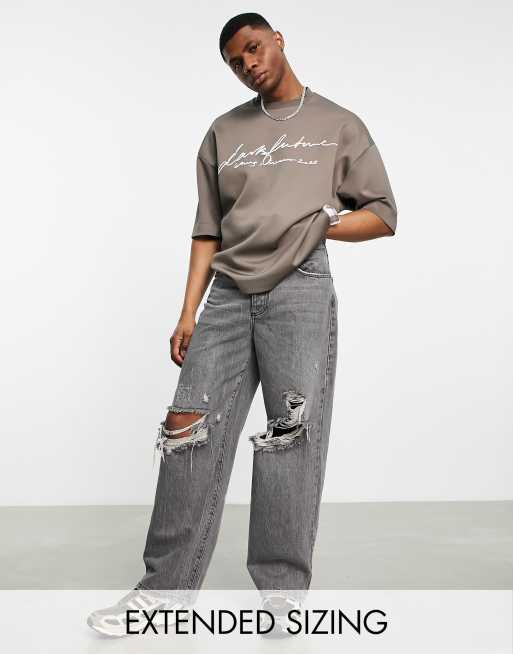 Camiseta marrón extragrande con bordado del logo en la parte delantera de tejido efecto neopreno de ASOS Dark Future