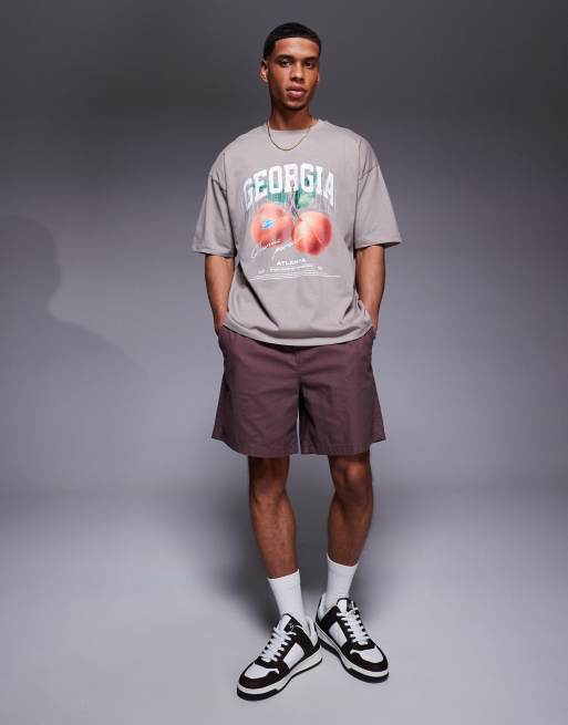 Camiseta marrón extragrande con estampado gráfico de melocotones de ASOS DESIGN